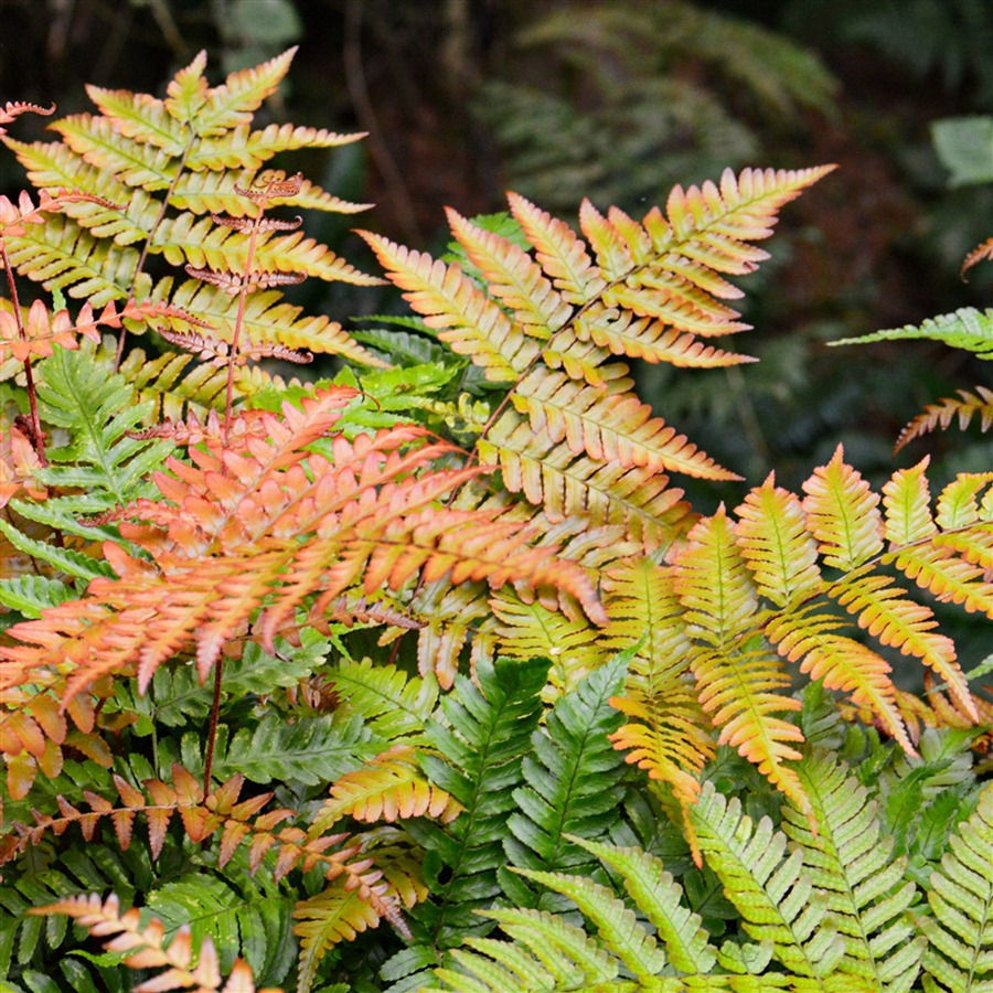 A japán ernyőpáfrány Japánban és Kínában őshonos. Nagy méretű laza, leomló levélzetű páfrány. Érdekessége, hogy a megjelenő új hajtások rézvörös színűek, amik a nyáron zöldre váltanak, de az idősebb levelek az ősz folyamán vissza vörösödnek. A páfrányok között ez egyedülálló. Fák, cserjék alatt, északi fekvésű ágyásban érzi jól magát. Kifejlett magassága 50-70cm.